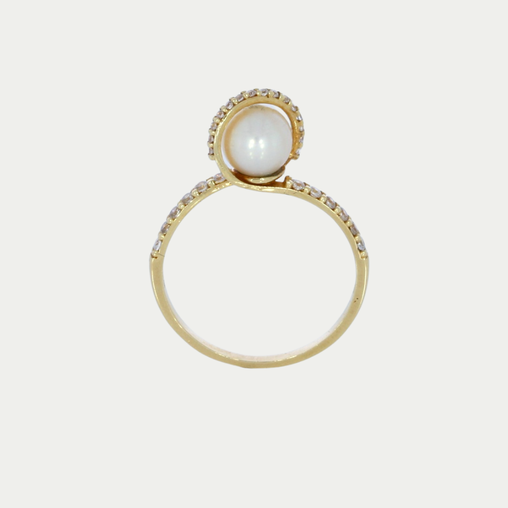 Solitario en oro amarillo con una perla cultivada, pequeñas zirconias a los costados. Medida: 8.0 Peso: 2.1 gramos. SKU: 06352FIGU3360