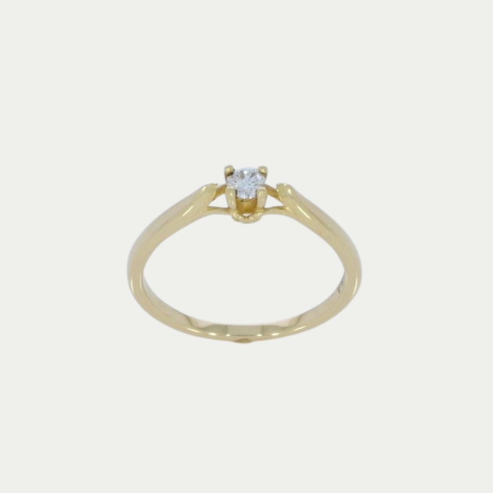 Anillo en oro amarillo liso con un diamante corte brillante de 0.15 puntos. Medida: 7.0 Peso: 2.1 gramos. SKU: 1675-2AN-B3101
