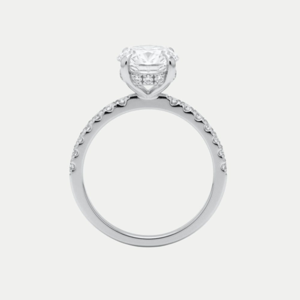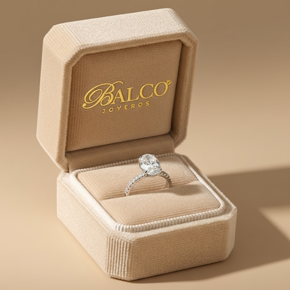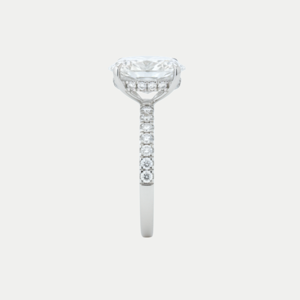 Hecho en oro blanco con un diamante de laboratorio corte oval al centro y pequeños diamantes de laboratorio corte brillante a los costados con un total de 3.50 quilates. Incluye certificado de autenticidad del diamante. Medida: 6.5. SKU: 16RU2AN140071