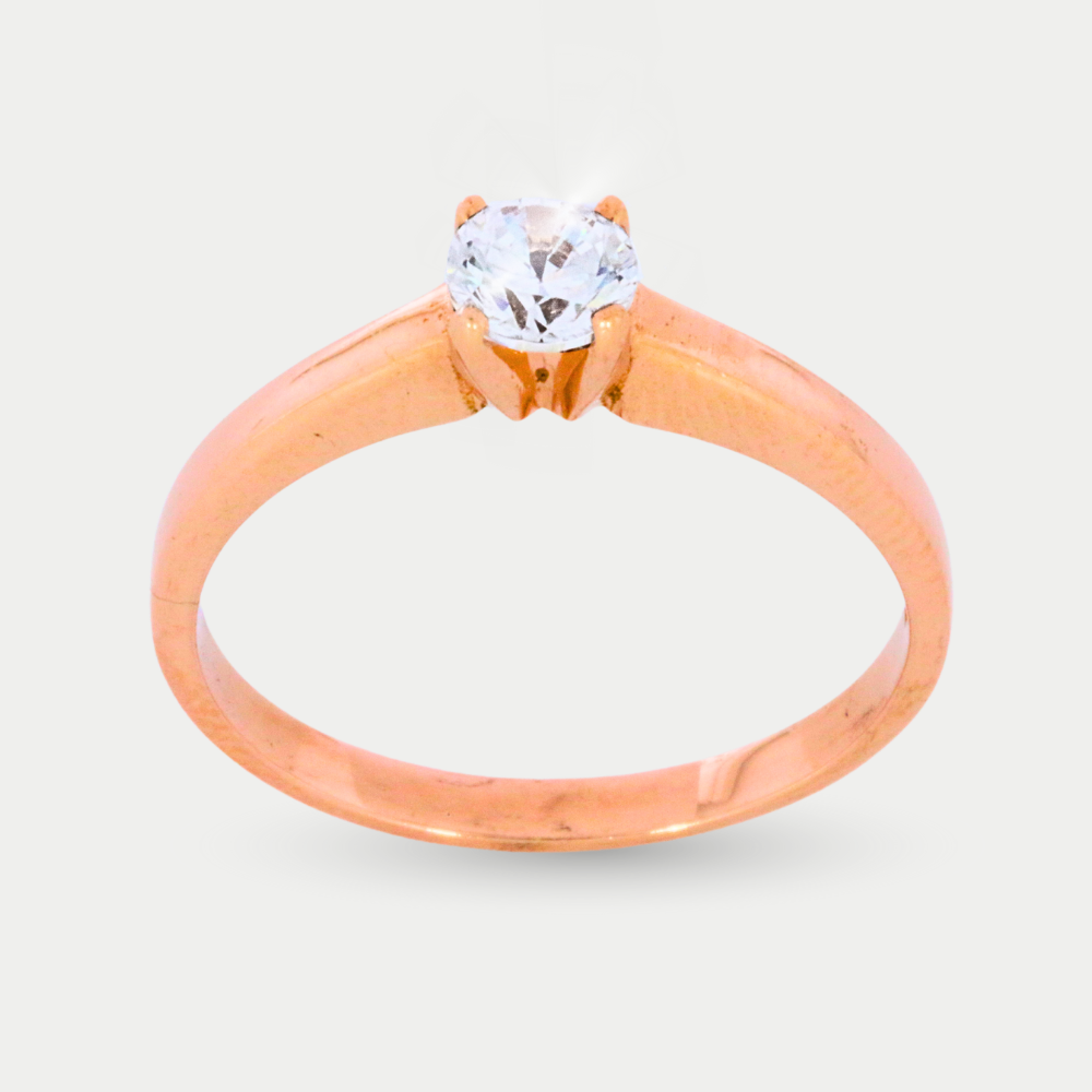 Solitario en oro rosa con una zirconia en la parte central. Medida: 6.5 Peso: 2.4 gramos. SKU: 06DN-1S-3840