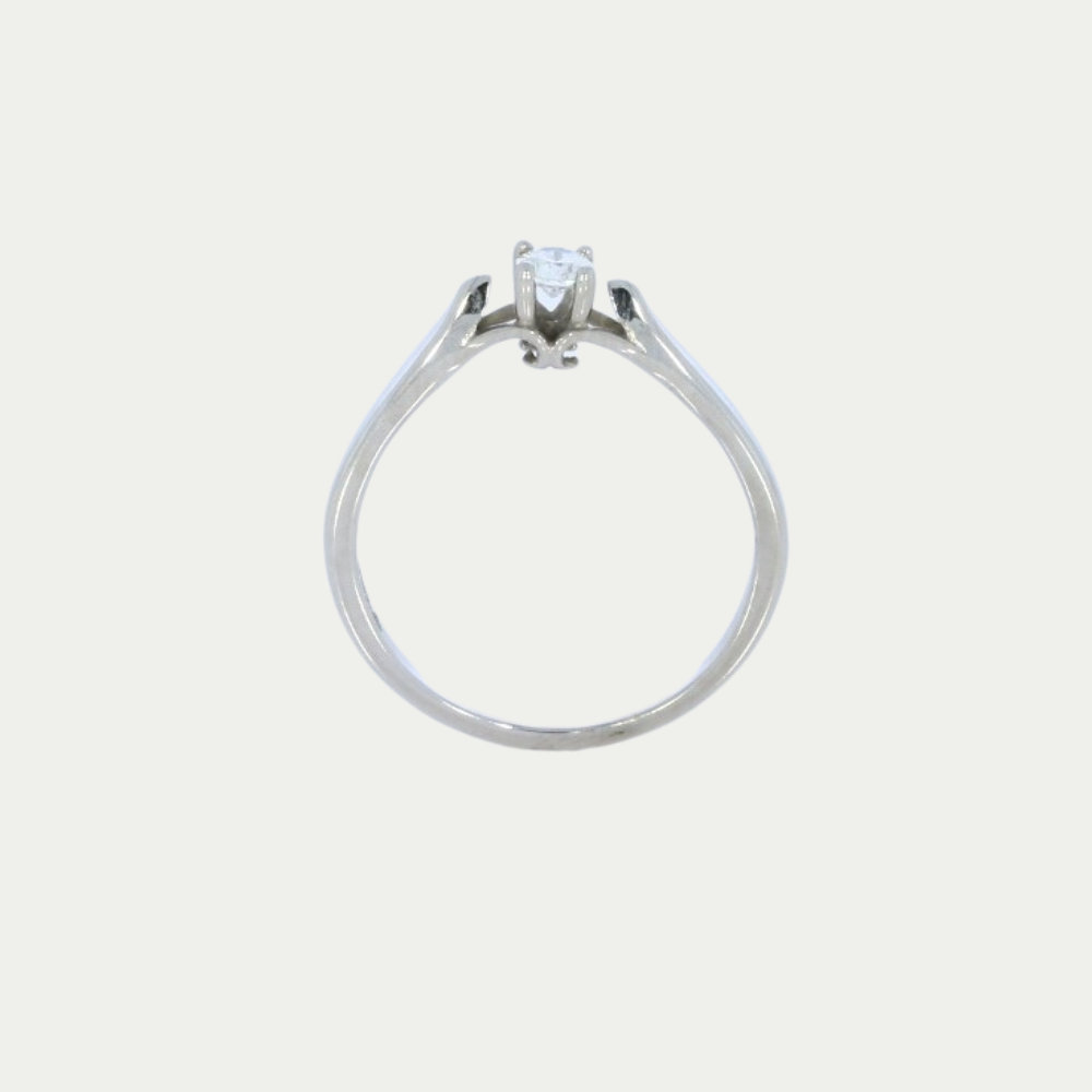 Anillo en oro blanco con un diamante corte brillante de 0.15 puntos, liso a los costados. Medida: 7.0 Peso: 2.1 gramos SKU: 1675-2AN-B3101B
