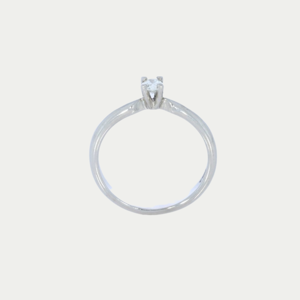 Anillo en oro blanco con un diamante corte brillante de 0.15 puntos, diseño liso. Medida: 6.0 Peso: 2.6 gramos. SKU: 1675-2AN-B6015B