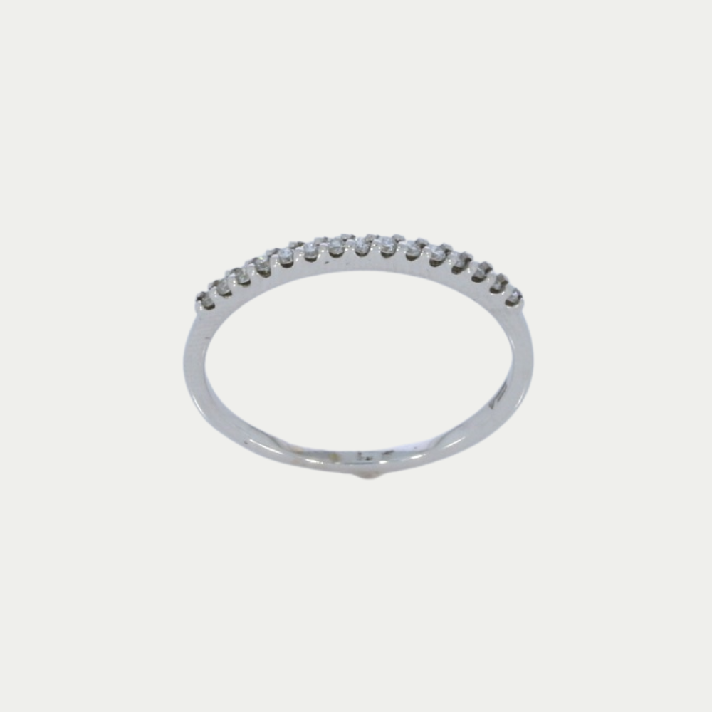 Churumbela en oro blanco con diamantes de corte brillante en la parte superior, con un total de 0.15 puntos, hermoso diseño atemporal, excelente modelo para lucirlo en cualquier evento especial o para su uso diario, incluye certificado de autenticidad de los diamantes. Medida: 8.0 Peso: 1.6 gramos. SKU: 1675-2C-B5029B