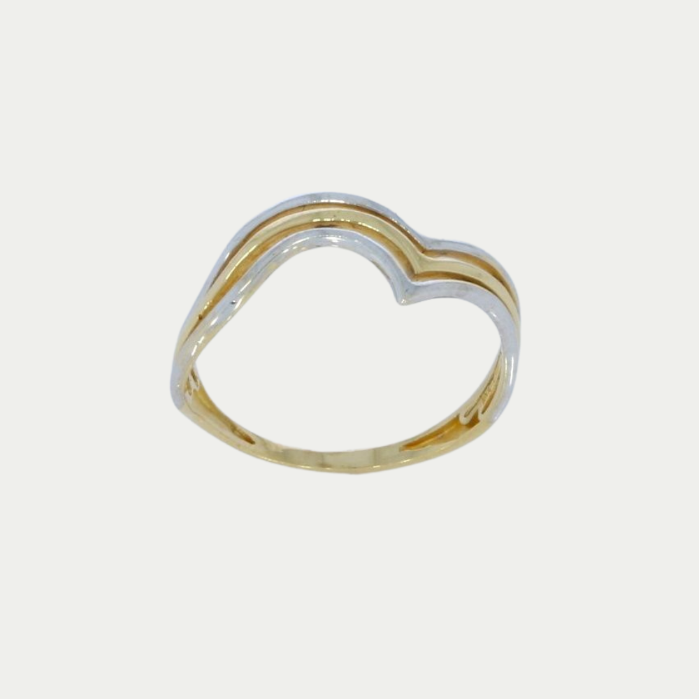 Anillo en oro amarillo con figuras de ondas, dos lineas con acabado en rodio. Medida: 6.5 Peso: 1.7 gramos. SKU: 06041SOLI1.7
