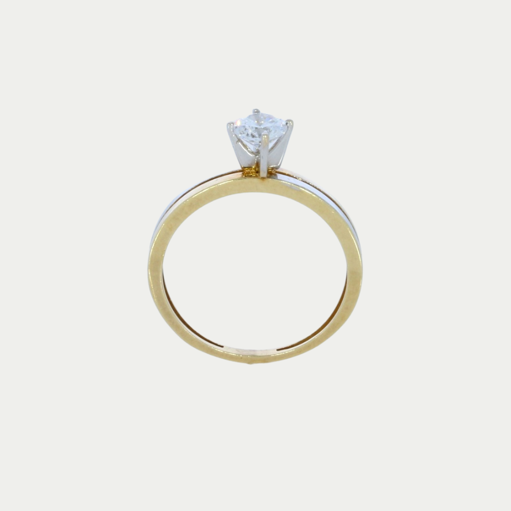 Solitario en oro amarillo con una zirconia en la parte central de color blanca. Medida: 7.0 Peso: 2.5 gramos. SKU: 06272SOLI4400
