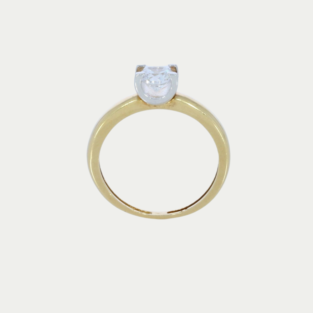 Solitario en oro amarillo con una zirconia en la parte central de color blanca. Medida: 6.0 Peso: 2.3 gramos. SKU: 06352SOLI4140