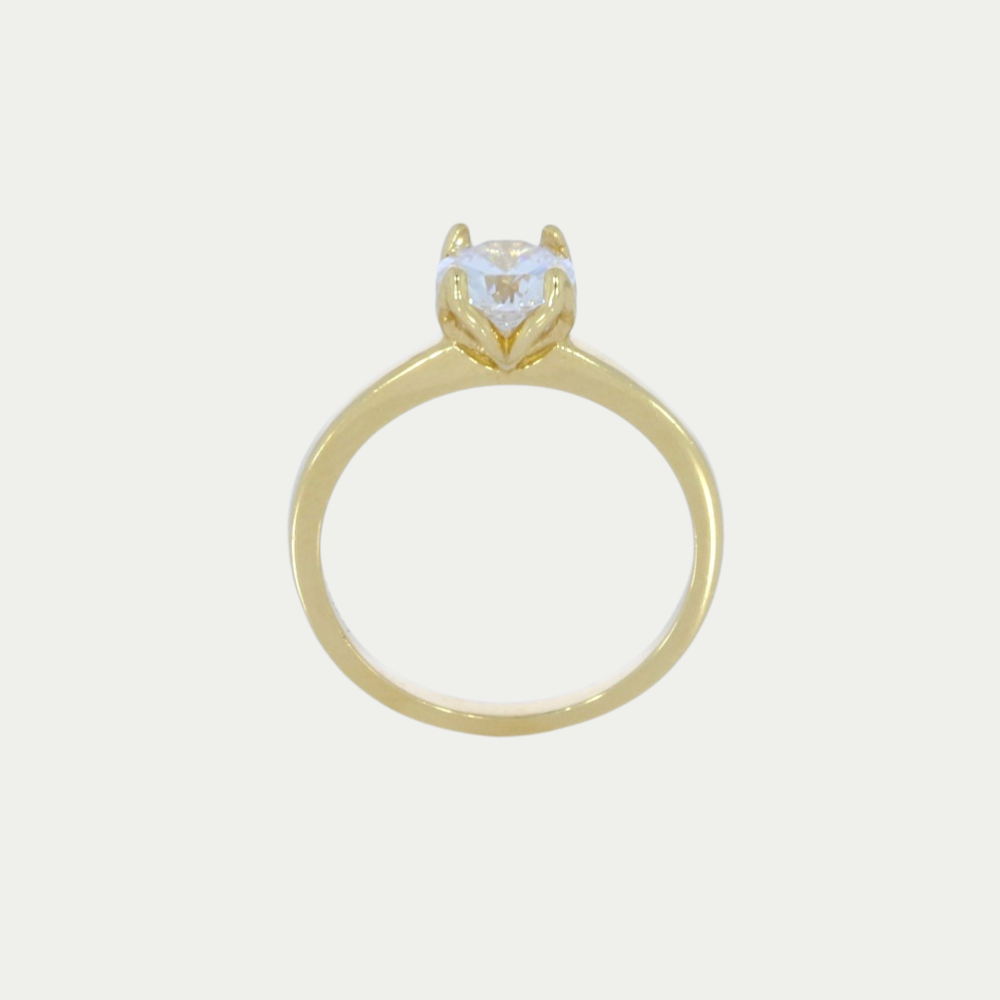 Solitario en oro amarillo con una zirconia en la parte central de color blanca. Medida: 5.5 Peso: 2.1 gramos. SKU: 0627-2SOLI-4746