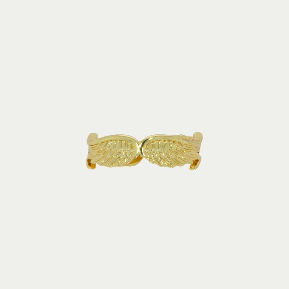 Hecho en acero inoxidable acabado dorado cubierto por figuras de alas, adecuado para combinar con varios estilos de ropa, su material garantiza una larga durabilidad tanto en acabado como en su construcción. Medida Ajustable: de 8.5 a 9.0 SKU: 0641-AF-165-6