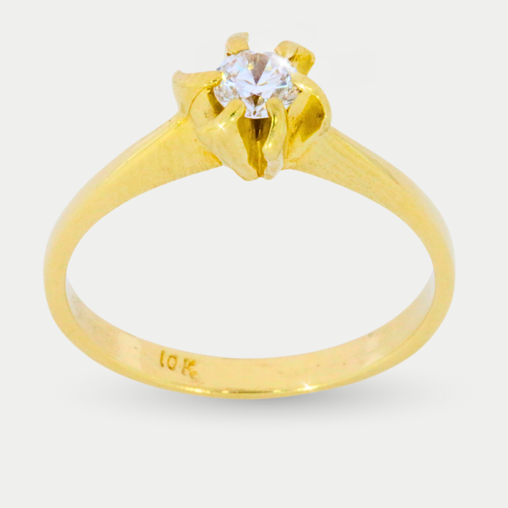 Solitario en oro amarillo con una zirconia de color blanca en la parte central. Medida: 7.0 Peso: 2.3 gramos. SKU: 06EU-1SOLA-3910