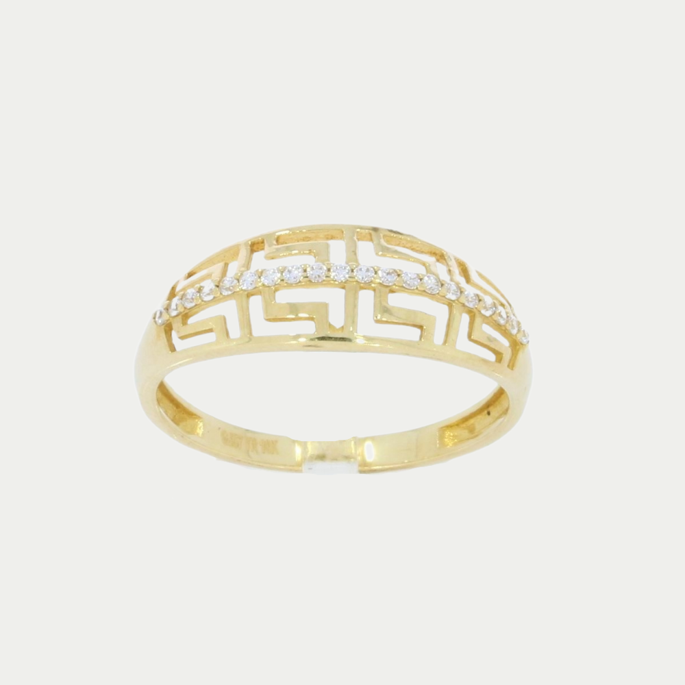 Anillo con diseño de grecas al frente y una linea cubierta con pequeas zirconias de color blancas. Medida: 7.0. Peso: 1.8 gramos. SKU: 0609-1ZIRC-3330-Florencia