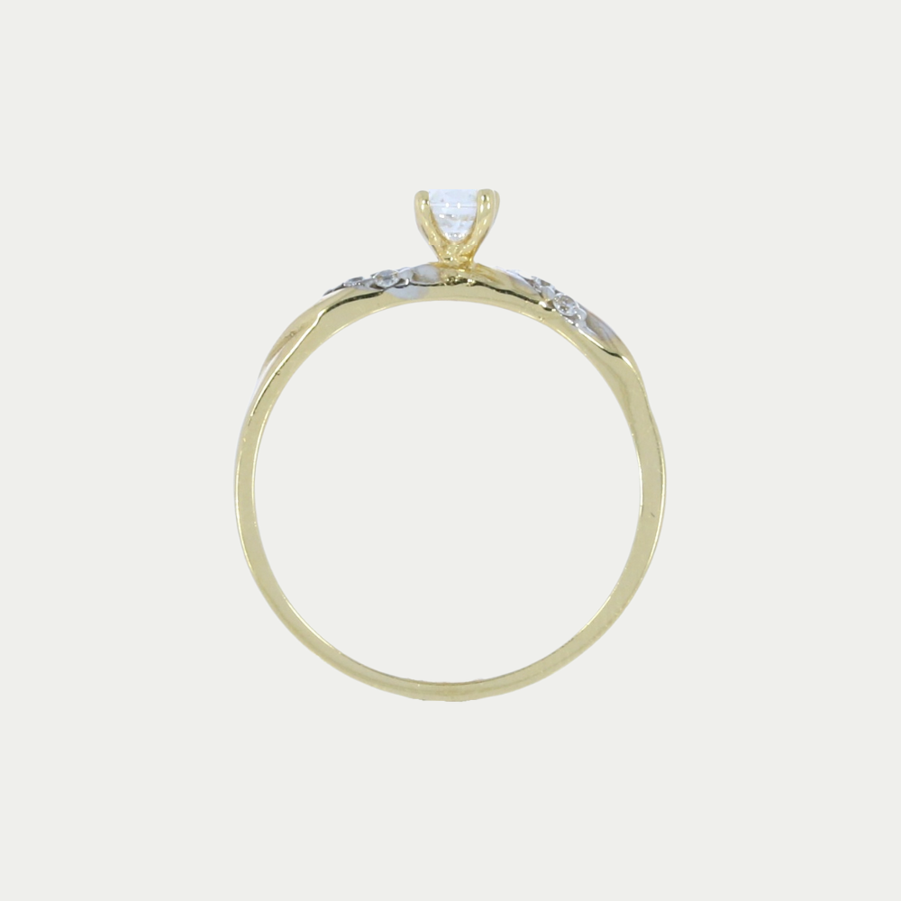 Anillo con una zirconia en la parte central, y tres pequeñas en cada costado con una linea en acabado con rodio. Medida: 7.0 Peso: 2.1 gramos SKU: 06OF-2SOLI-4961-Mare