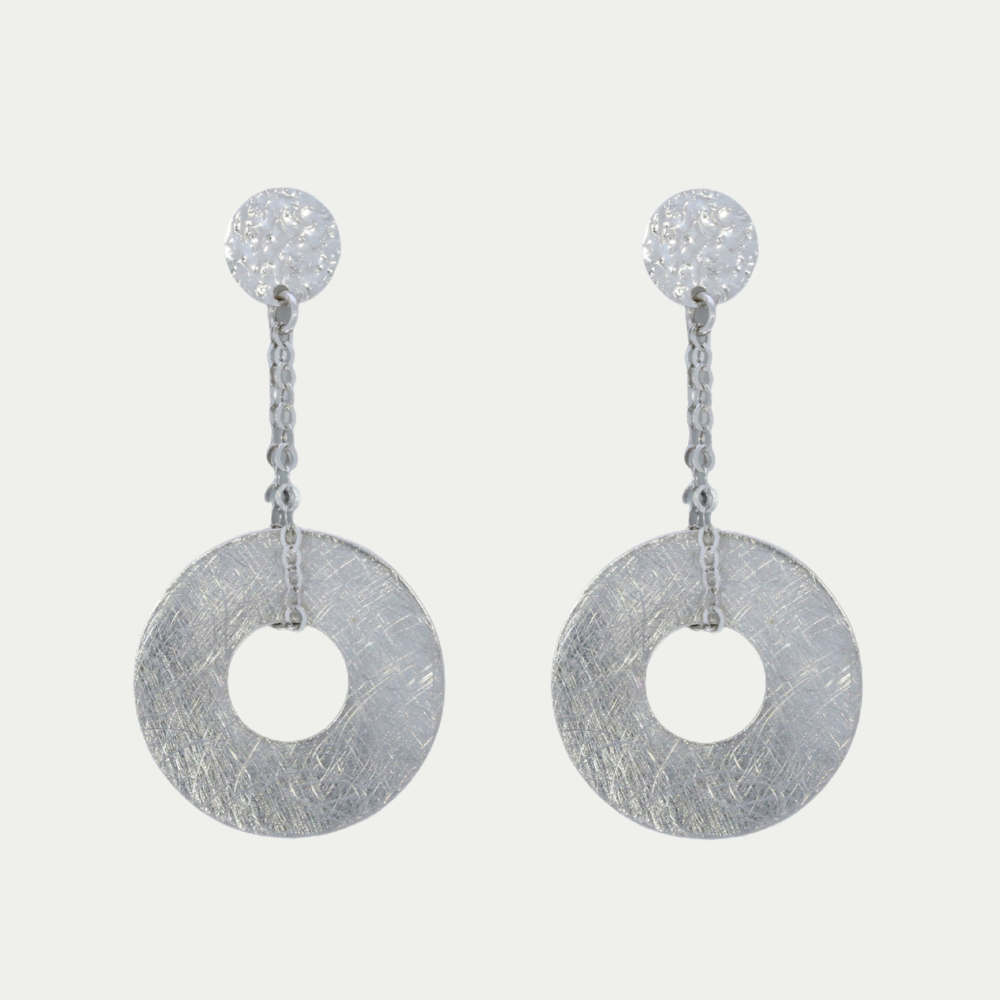 Hecho en oro blanco con figura de un círculo grabado colgante, en la parte superior cuenta con un pequeño circulo grabado, hermoso modelo para llevarlo a cualquier evento especial que sin duda lucirá fantástico, nuestro oro es completamente garantizado. Medida: 4.6 cm de largo, 2.2 cm de diámetro. Peso: 3.2 gramos. SKU: 09402CIRCZN3.2