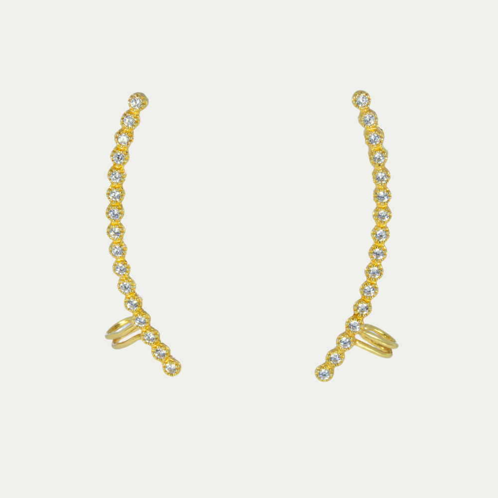 Hecho en oro amarillo diseño lambada con pequeñas zirconias redondas de color blancas, hermoso modelo para llevarlo a cualquier evento especial que sin duda lucirá fantástico, nuestro oro es completamente garantizado. Medida: 3.5 cm de largo. Peso: 2.7 gramos. SKU: 0909-1ZIRC-3780
