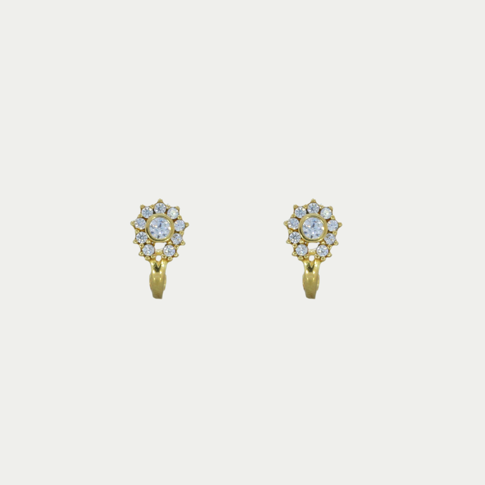 Hecho en oro amarillo con una zirconia al centro de color blanca y pequeñas al rededor, hermoso modelo para llevarlo a cualquier evento especial que sin duda lucirá fantástico, nuestro oro es completamente garantizado. Medida: 1 cm de alto. Peso: 1.0 gramos. SKU: 09GC-1ZIRC-1940