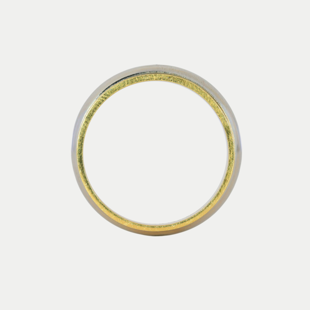 Hecha en oro amarillo, con una línea giratoria en oro blanco al centro, realizamos el grabado de nombre y fecha (letras y números) por la parte de adentro sin costo adicional. Ancho del anillo: 6mm Mandar mensaje por WhatsApp para confirmar medidas. Tiempo de preparación de los anillos: 20 días hábiles aproximadamente, mas el tiempo de entrega de paquetería que es de 2 - 5 días hábiles aproximadamente.