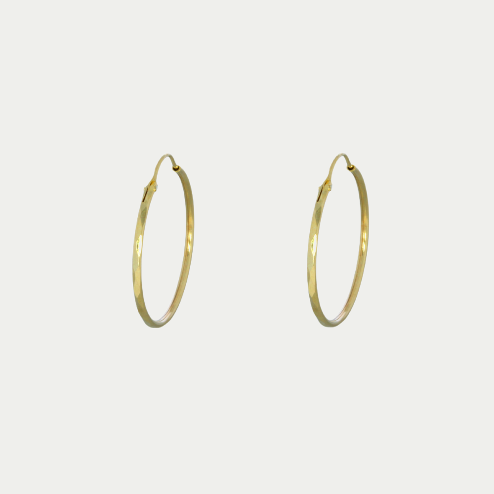 Hecha en oro amarillo hueca con acabado facetado que le dará un brillo especial, hermoso modelo para llevarlo a cualquier evento especial que sin duda lucirá fantástico, combínelo con cualquier outfit de su preferencia, nuestro oro es completamente garantizado. Medida: 2.3 cm de diámetro, 1.5 mm de ancho. Peso: 1.2 gramos SKU: 1009-1F-1680