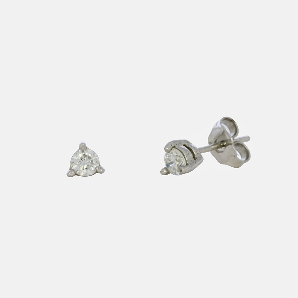 Par de broquel en oro blanco, con diamante corte brillante de 0.30 puntos. Broche de mariposa. Incluye certificado de autenticidad del diamante. Tamaño de la piedra: 3mm