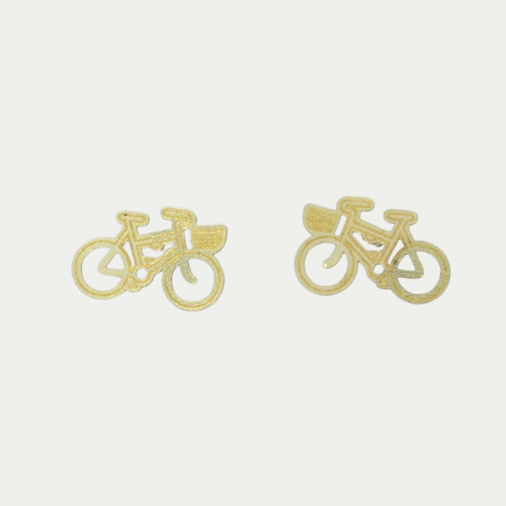 Par de broqueles en oro amarillo con figura de una bicicleta. SKU: 29-M1565