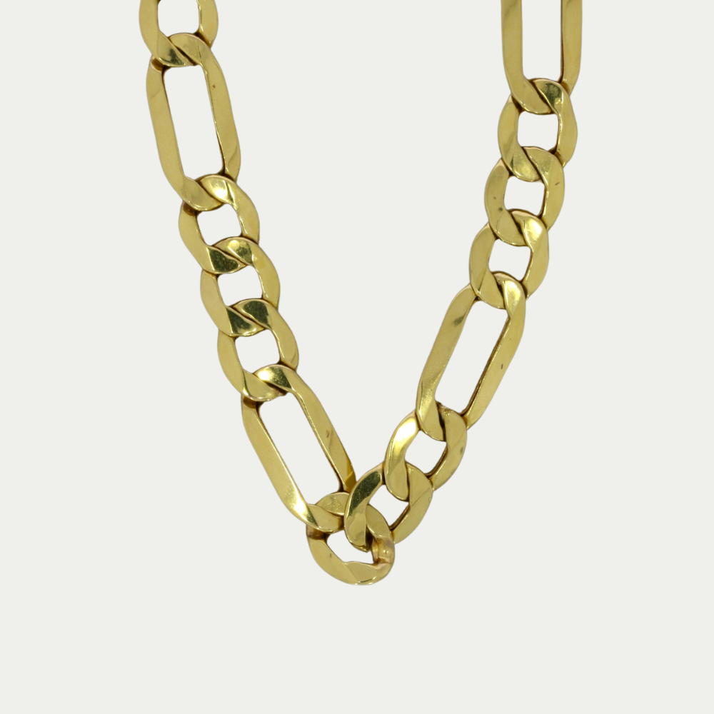Hecha en oro amarillo tejido fígaro 3x1, eslabón hueco, acabado pulido en cada uno de los eslabones, cuenta con un broche de perico, su grosor de eslabón lo hará lucir espectacular, combínelo con cualquier outfit de su preferencia, excelente accesorio para usarlo en el momento que usted lo requiera, o también para llevarla puesta en su día a día. Medida: 67 cm de largo, 1cm de ancho. Peso: 31.5 gramos. Tipo de broche: Perico SKU: 03GC-1C-45000