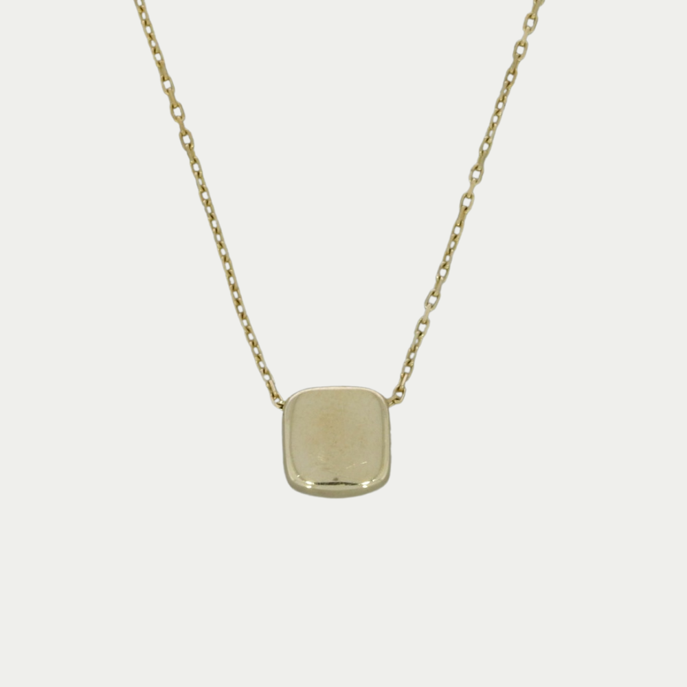 Gargantilla con un dije de forma cuadrada en acabado liso. Medida de la cadena: 45cm de largo. Tipo de broche: Redondo. Peso: 1.8 gramos. SKU: 0709-1F-3150-Zinerva