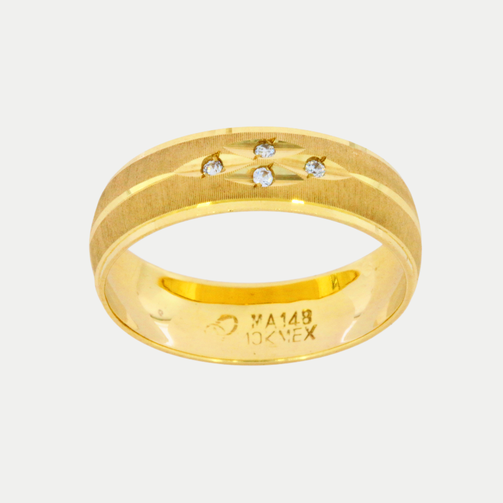 Hechas en oro amarillo con 4 zirconias al centro acabado satinado que cubre la mitad del cuerpo del anillo y su otra mitad tiene acabado liso, realizamos el grabado de nombre y fecha (letras y números) por la parte de adentro sin costo adicional. Ancho del anillo: 6mm Precio aplica para el par con medidas 6.0 y 10.0. Mandar mensaje por WhatsApp para cotizar en diferentes medidas (tiene un costo extra cuando sumando las medidas de los dos anillos da un total de 16 puntos en adelante). Tiempo de preparación de los anillos: 20 días hábiles aproximadamente, mas el tiempo de entrega de paquetería que es de 2 - 5 días hábiles aproximadamente.