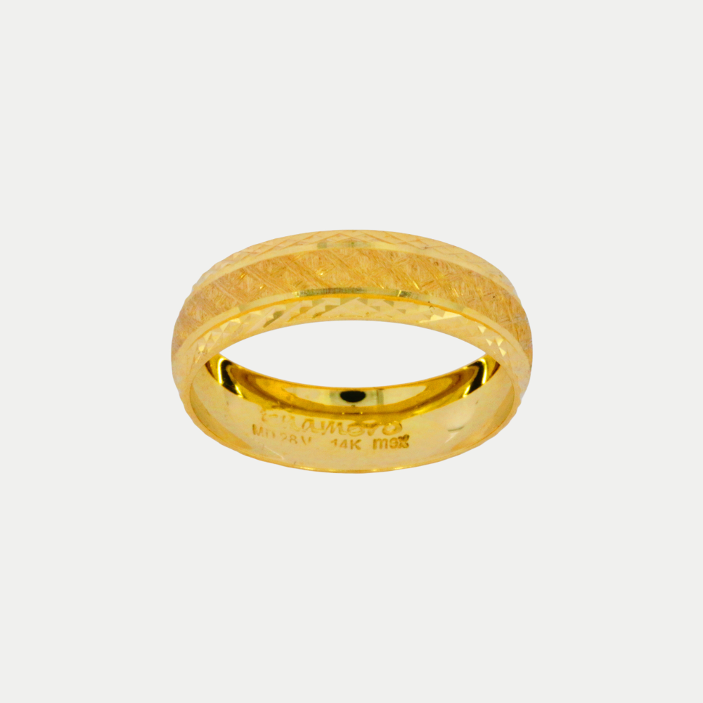 Hechas en oro amarillo acabado satinado con figuras de "X" y bisel acabado pulido con figuras triangulares, realizamos el grabado de nombre y fecha (letras y números) por la parte de adentro sin costo adicional. Ancho del anillo: 6mm Precio aplica para el par con medidas 6.0 y 10.0. Mandar mensaje por WhatsApp para cotizar en diferentes medidas (tiene un costo extra cuando sumando las medidas de los dos anillos da un total de 16 puntos en adelante). Tiempo de preparación de los anillos: 20 días hábiles aproximadamente, mas el tiempo de entrega de paquetería que es de 2 - 5 días hábiles aproximadamente.