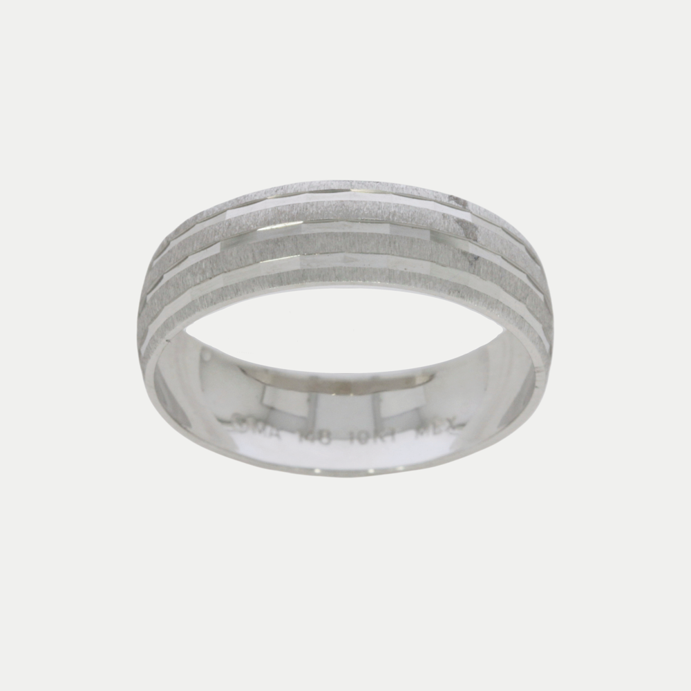 Hechas en oro blanco acabado satinado con 3 líneas facetadas, realizamos el grabado de nombre y fecha (letras y números) por la parte de adentro sin costo adicional. Ancho del anillo: 6mm Precio aplica para par con medidas 6.0 y 10.0. Mandar mensaje por WhatsApp para cotizar en diferentes medidas (tiene un costo extra cuando sumando las medidas de los dos anillos da un total de 16 puntos en adelante). Tiempo de preparación de los anillos: 20 días hábiles aproximadamente, mas el tiempo de entrega de paquetería que es de 2 - 5 días hábiles aproximadamente.