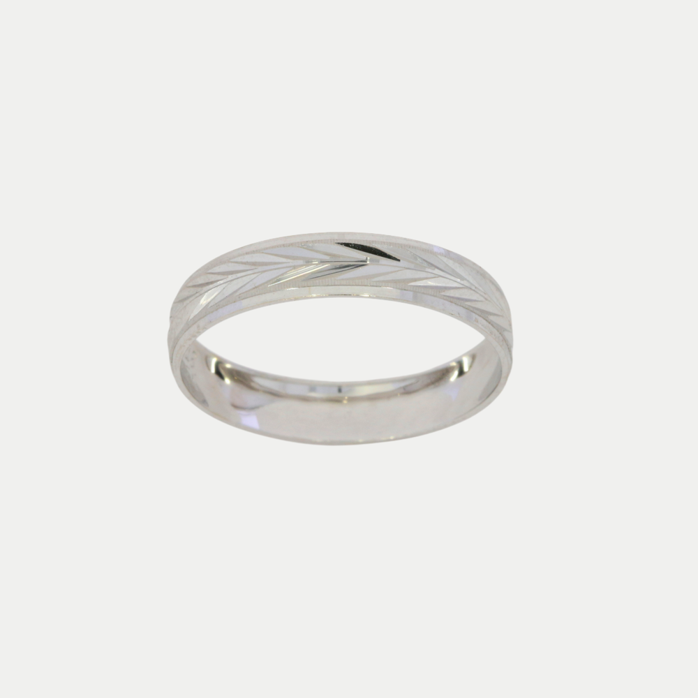 Hechas en oro blanco, acabado con figuras de espigas al rededor del anillo, realizamos el grabado de nombre y fecha (letras y números) por la parte de adentro sin costo adicional. Ancho del anillo: 4mm Precio aplica para el par con medidas 6.0 y 10.0. Mandar mensaje por WhatsApp para cotizar en diferentes medidas (tiene un costo extra cuando sumando las medidas de los dos anillos da un total de 16 puntos en adelante). Tiempo de preparación de los anillos: 20 días hábiles aproximadamente, mas el tiempo de entrega de paquetería que es de 2 - 5 días hábiles aproximadamente.