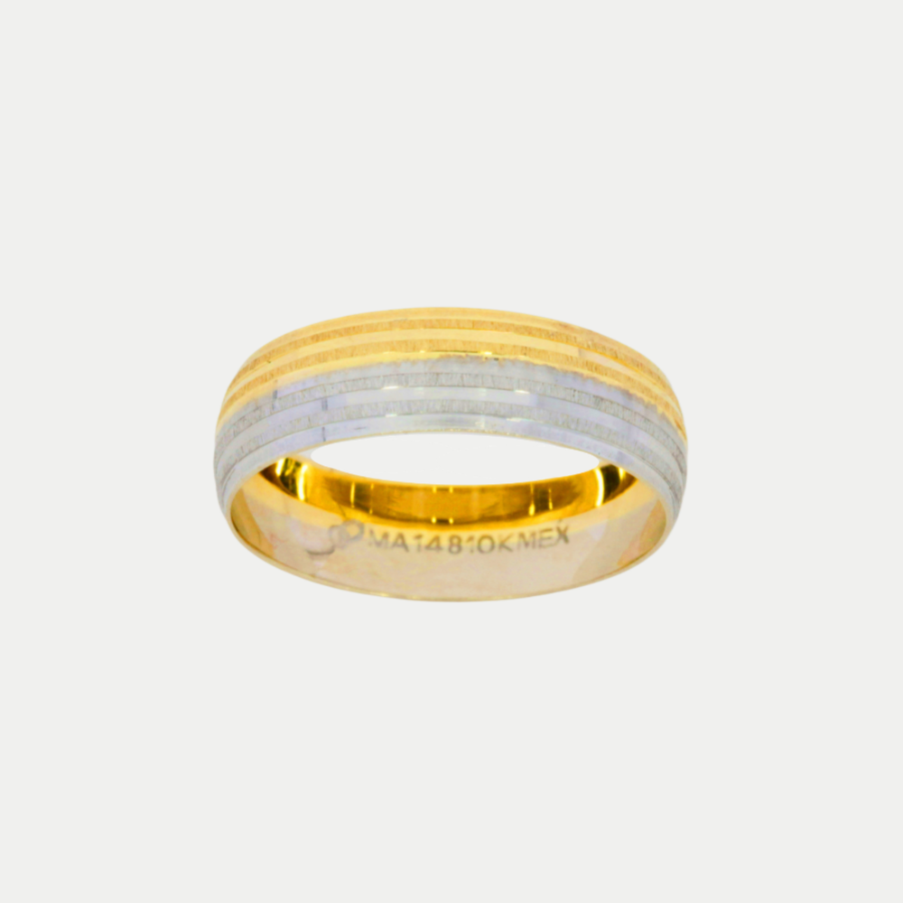 Hechas en oro amarillo combinadas con oro blanco, acabado satinado con líneas lisas que cubre todo el cuerpo del anillo, realizamos el grabado de nombre y fecha (letras y números) por la parte de adentro sin costo adicional. Ancho del anillo: 6mm Precio aplica para par con medidas 6.0 y 10.0. Mandar mensaje por WhatsApp para cotizar en diferentes medidas (tiene un costo extra cuando sumando las medidas de los dos anillos da un total de 16 puntos en adelante). Tiempo de preparación de los anillos: 20 días hábiles aproximadamente, mas el tiempo de entrega de paquetería que es de 2 - 5 días hábiles aproximadamente.