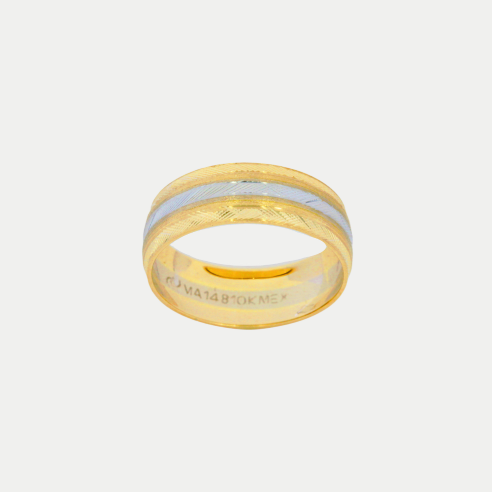 Hechas en oro amarillo combinadas con oro blanco, 3 líneas en acabado diamantado y 2 líneas satinadas, realizamos el grabado de nombre y fecha (letras y números) por la parte de adentro sin costo adicional. Ancho del anillo: 6mm Precio aplica para par con medidas 6.0 y 10.0. Mandar mensaje por WhatsApp para cotizar en diferentes medidas (tiene un costo extra cuando sumando las medidas de los dos anillos da un total de 16 puntos en adelante). Tiempo de preparación de los anillos: 20 días hábiles aproximadamente, mas el tiempo de entrega de paquetería que es de 2 - 5 días hábiles aproximadamente.