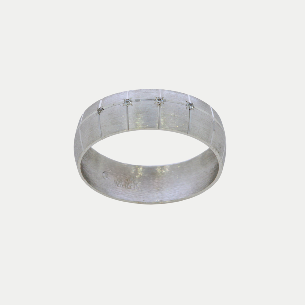 Hechas en oro blanco, acabado satinado con 4 zirconias blancas pequeñas al centro, realizamos el grabado de nombre y fecha (letras y números) por la parte de adentro sin costo adicional. Ancho del anillo: 6mm Precio aplica para el par con medidas 6.0 y 10.0. Mandar mensaje por WhatsApp para cotizar en diferentes medidas (tiene un costo extra cuando sumando las medidas de los dos anillos da un total de 16 puntos en adelante). Tiempo de preparación de los anillos: 20 días hábiles aproximadamente, mas el tiempo de entrega de paquetería que es de 2 - 5 días hábiles aproximadamente.