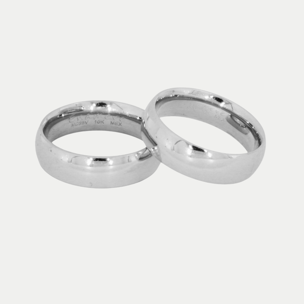 Hechas en oro blanco con acabado pulido, confort hueca, realizamos el grabado de nombre y fecha (letras y números) por la parte de adentro sin costo adicional. Ancho del anillo: 6mm Precio aplica para el par con medidas 6.0 y 10.0. Mandar mensaje por WhatsApp para cotizar en diferentes medidas (tiene un costo extra cuando sumando las medidas de los dos anillos da un total de 16 puntos en adelante). Tiempo de preparación de los anillos: 20 días hábiles aproximadamente, mas el tiempo de entrega de paquetería que es de 2 - 5 días hábiles aproximadamente.