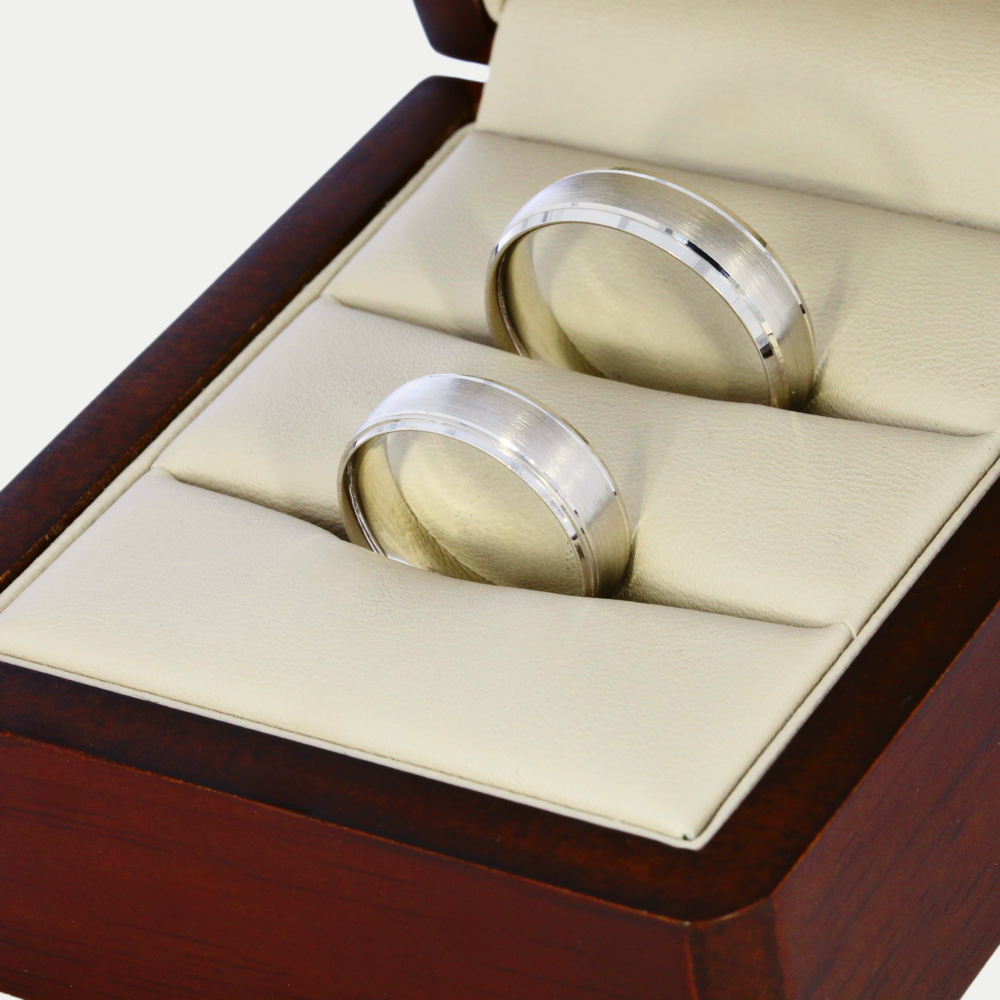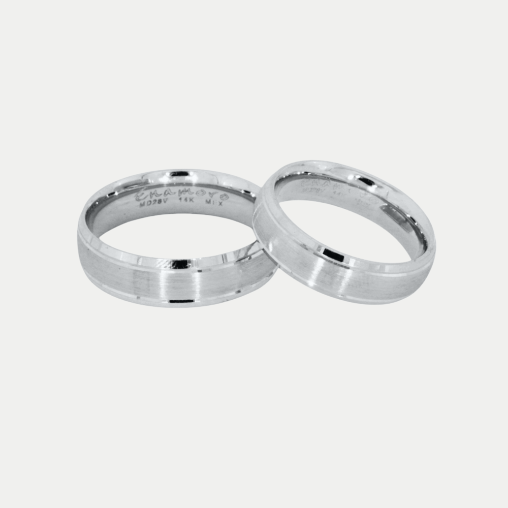 Hechas en oro blanco acabado satinado con bisel pulido, diseño confort hueco, realizamos el grabado de nombre y fecha (letras y números) por la parte de adentro sin costo adicional. Ancho del anillo: 6mm Precio aplica para el par con medidas 6.0 y 10.0. Mandar mensaje por WhatsApp para cotizar en diferentes medidas (tiene un costo extra cuando sumando las medidas de los dos anillos da un total de 16 puntos en adelante). Tiempo de preparación de los anillos: 20 días hábiles aproximadamente, mas el tiempo de entrega de paquetería que es de 2 - 5 días hábiles aproximadamente.