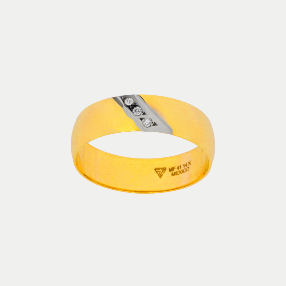 Hechas en oro amarillo, acabado pulido con una línea en diagonal platinada con 3 zirconias de color blancas, realizamos el grabado de nombre y fecha (letras y números) por la parte de adentro sin costo adicional. Ancho del anillo: 6mm Precio aplica para el par con medidas 6.0 y 10.0. Mandar mensaje por WhatsApp para cotizar en diferentes medidas (tiene un costo extra cuando sumando las medidas de los dos anillos da un total de 16 puntos en adelante). Tiempo de preparación de los anillos: 30 días hábiles aproximadamente, mas el tiempo de entrega de paquetería que es de 2 - 5 días hábiles aproximadamente.