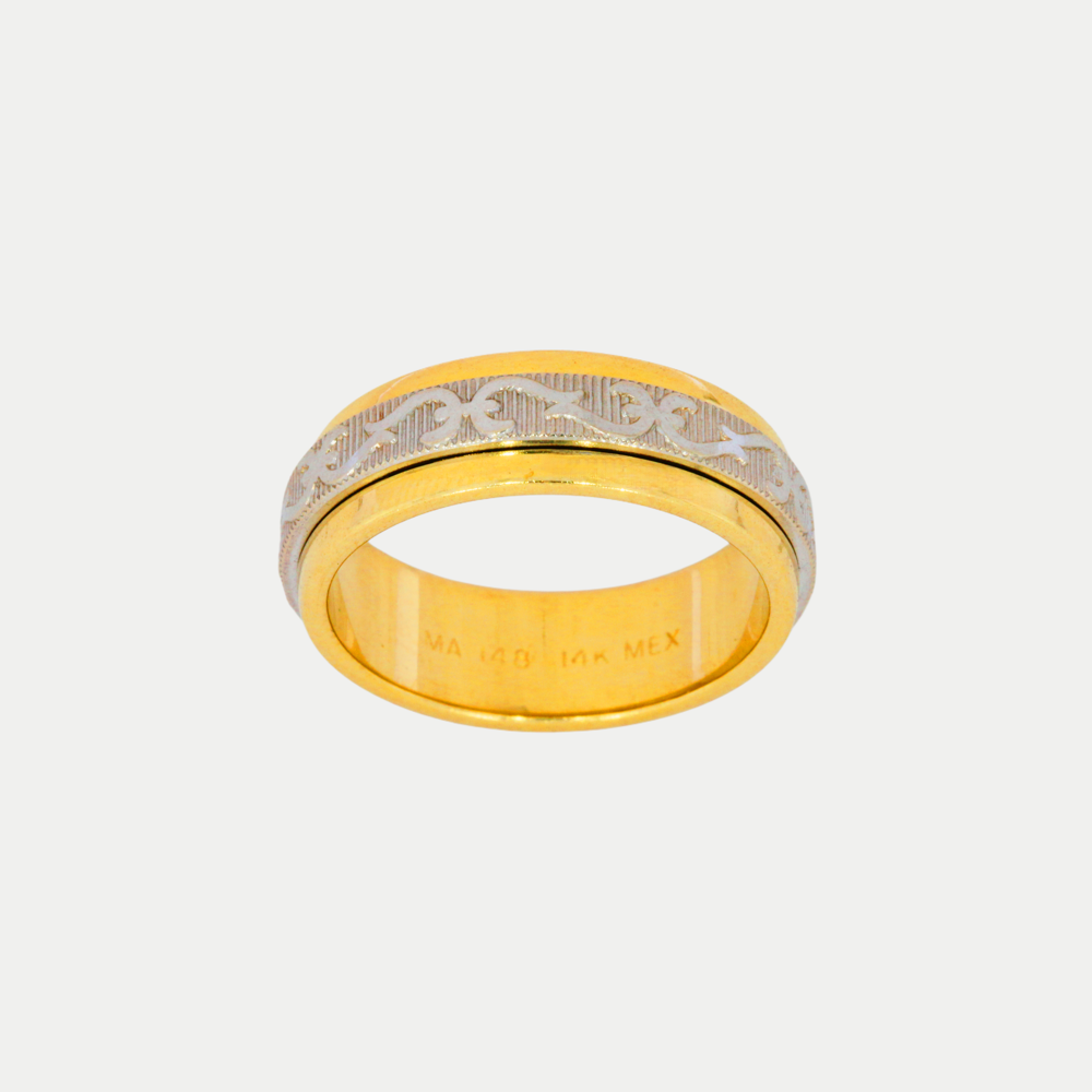 Hechas en oro amarillo, con una línea en oro blanco al centro giratoria con diseño vintage, realizamos el grabado de nombre y fecha (letras y números) por la parte de adentro sin costo adicional. Ancho del anillo: 6mm Precio aplica para el par con medidas 6.0 y 10.0. Mandar mensaje por WhatsApp para cotizar en diferentes medidas (tiene un costo extra cuando sumando las medidas de los dos anillos da un total de 16 puntos en adelante). Tiempo de preparación de los anillos: 20 días hábiles aproximadamente, mas el tiempo de entrega de paquetería que es de 2 - 5 días hábiles aproximadamente.