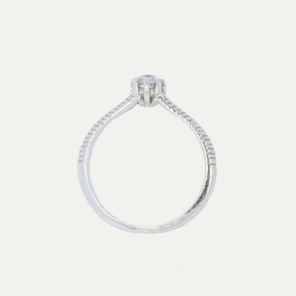Anillo con una zirconia en la parte central, con un diseño de doble linea en la parte de arriba. Medida: 7.0 Peso: 3.0 gramos SKU: 0616-2SOLI-ZZ3.0-Mafer